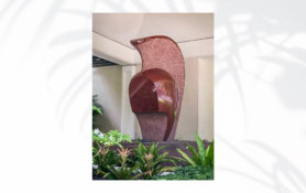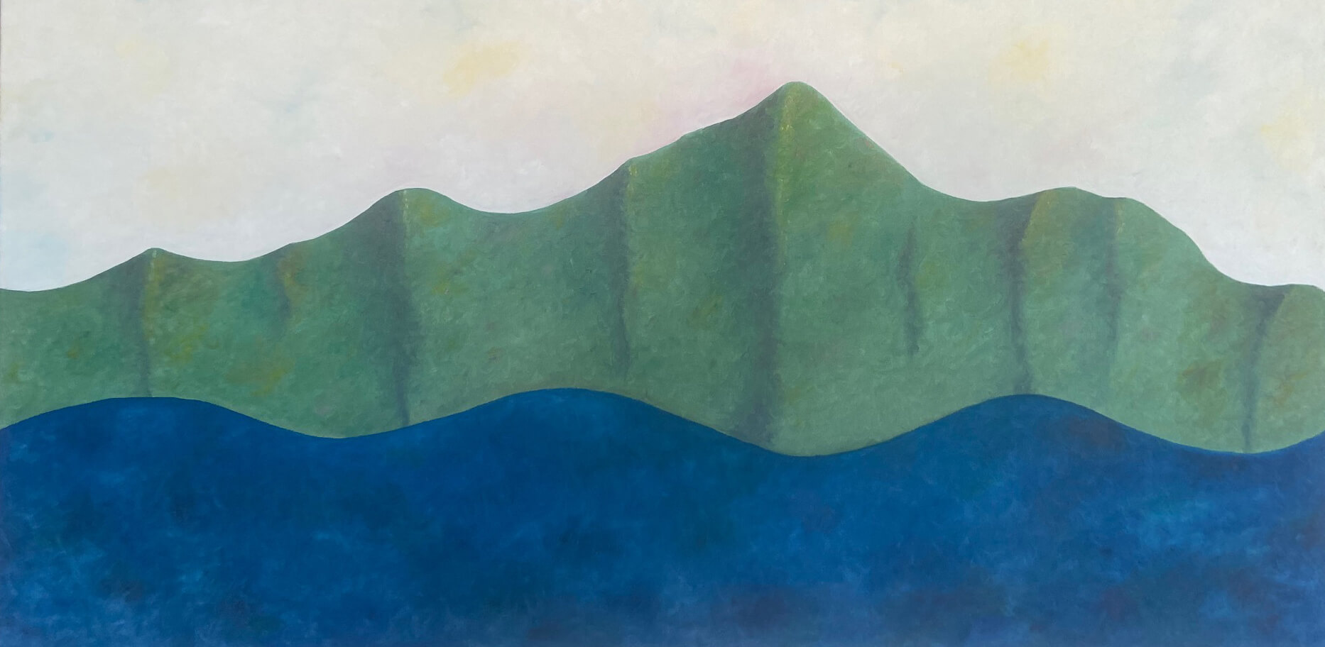 Land Sky Ocean by JOHN KOGA (1964) is one of the four original oil paintings commissioned by Halekulani made especially to be displayed on the walls of our rooms and suites. Striking a harmonious balance of the elements, this playful piece resembles the likeness of another work in the collection titled “Surf and Submerged Rocks” by Tadashi Sato, who was a mentor to Koga. The scene may also call to mind the view just outside our hotel windows towards Lēʻahi where the healing waters of Kawehewehe are visible in the foreground. Behind the carefully moulded mountains is a sky with several shades of white on the verge of color, ready to give way to a rainbow.