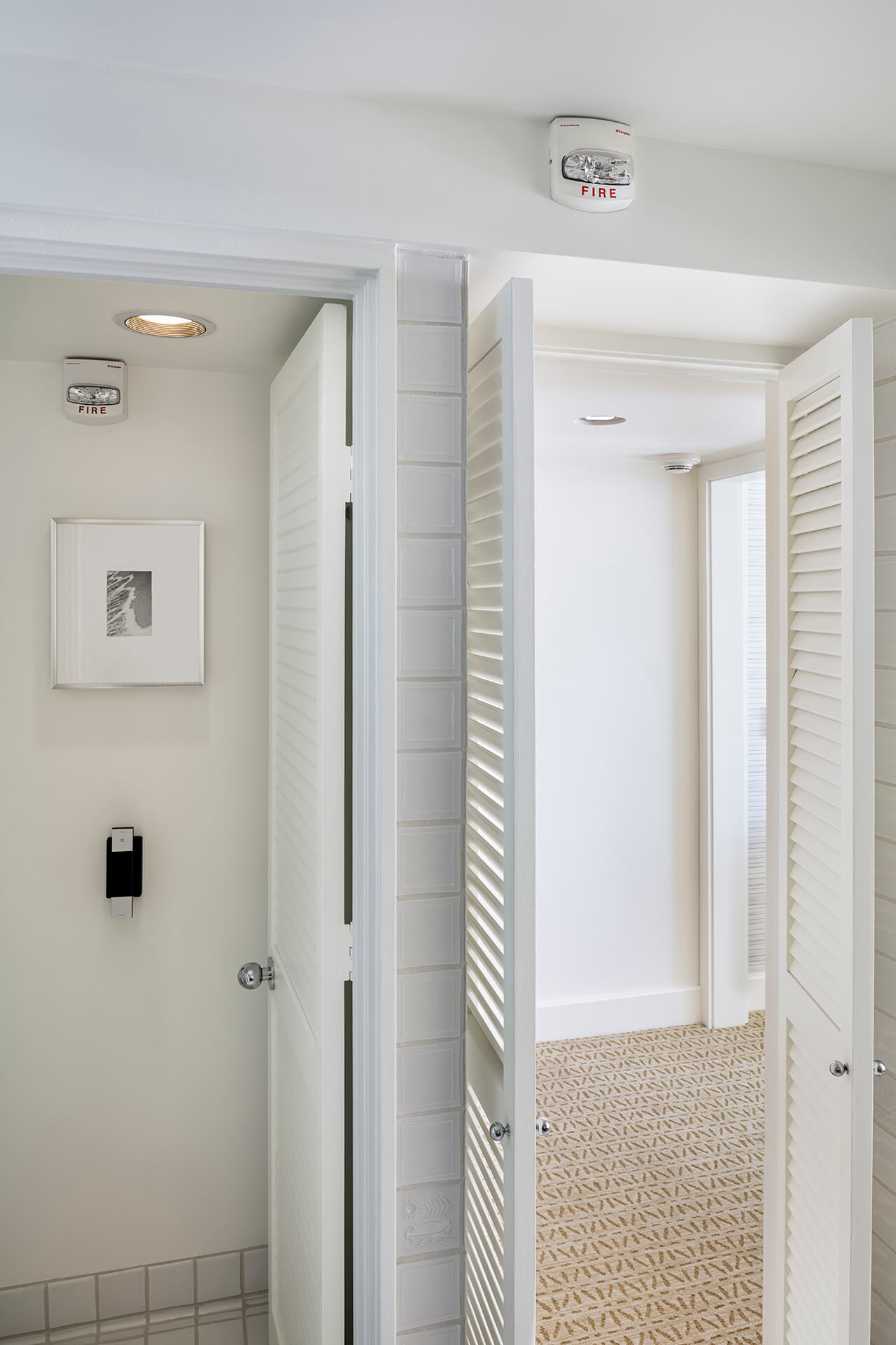 Hearing accessible room with magnificent, straight-ahead views of Waikiki Beach and the Pacific Ocean, overlooking the iconic Halekulani Orchid pool. Hearing accessible amenities include fixed strobe unit, outlet for TTY phones, visible notification device for door knocks and phone calls, visual smoke alarm devices, and closed caption decoders for television. Deluxe bathroom and sophisticated amenities.